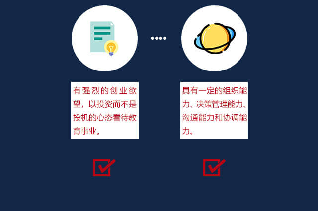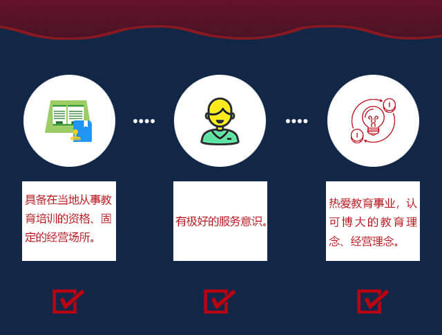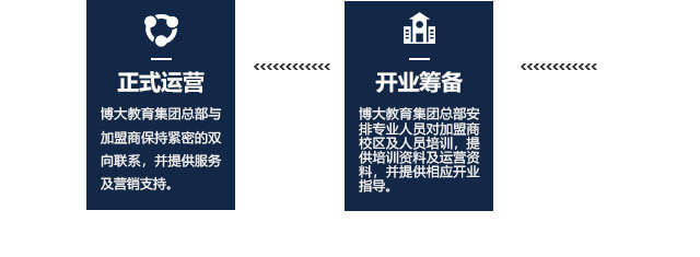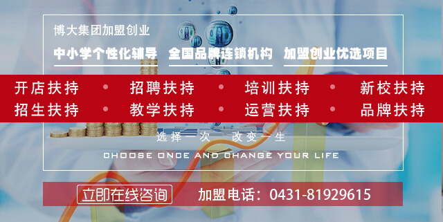 博大教育集团为加盟商提供选址、校区装修规划、设计、开业、活动、各岗位培训、课程、后期运营长期扶持等校区运营各个环节的一切事宜。计时你没有教育行业经验,也可轻松投资教育培训行业。